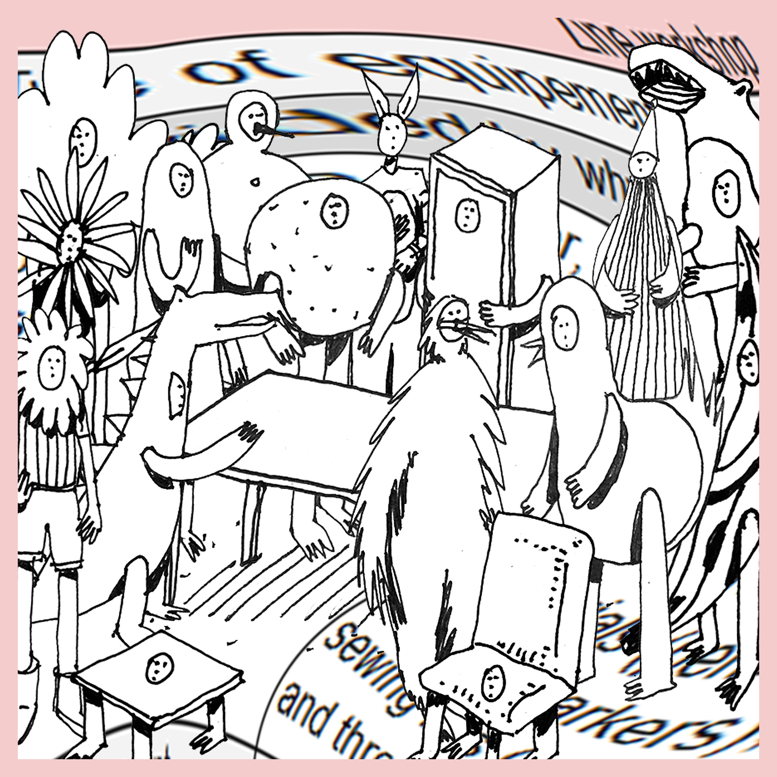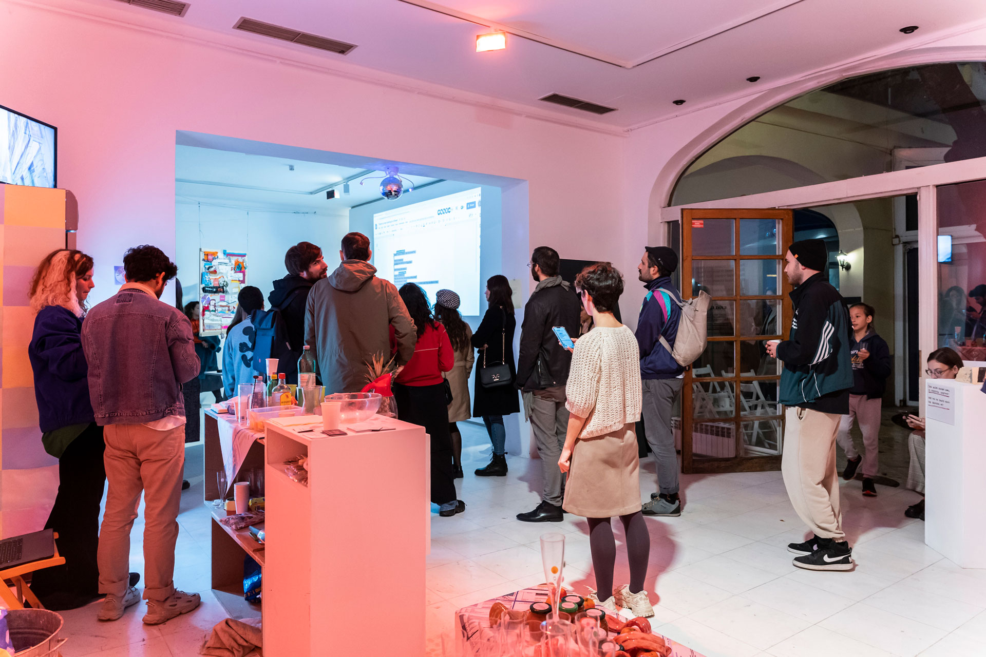 Beginning in March 2022, the 4th edition of WHW Akademija has evolved as a process of collaborative and reciprocal learning, facilitated by a group of invited professors but also by the twelve selected participants, whose individual commitments have unfolded over time into an investigation of collectivity and the common. The final week in Galerija Nova is both a presentation and continuation of this process, an exhibitionary habitat for themes, questions, joys and anxieties that have accumulated through a host of online and onsite workshops, lectures, seminars, meetings, chat groups, collectively edited documents, excel sheets and mind maps. Conceived and organized by participants themselves, with the mentoring support of this year’s resident professor independent scholar and writer Ivana Bago, this final event is structured as a “base for artistic research,” or simply, a bar, which will serve as an anchor point for a series of public events happening daily from 5 to 8 pm and constituting an exhibition-in-progress.